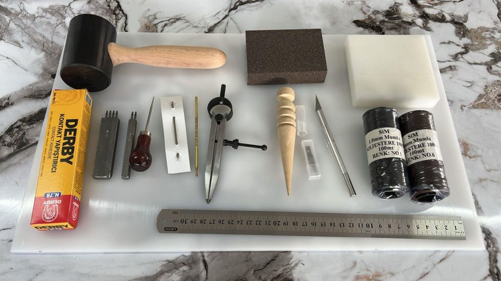 Deri: Yapılmak istenen deri ürününe uygun deri Kesim Aletleri: Kesim matı ve maket bıçağı Delme Aletleri: Tekli, 2’li 3’lü 4’lü